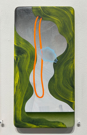 I view these sculptures as specimens from an imaginary terrain. Recently, I have started painting small abstract landscapes as a way to further explore the possible environments from which these specimens may have been collected. The painted landscapes resemble our own world, but are a softer and more idealized version, or at least a version with colors I like.