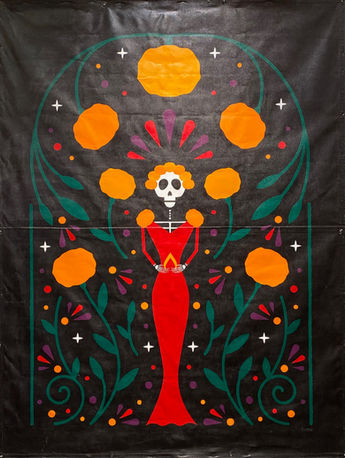 Our Día de los Muertos Art Collection began in 2020, during the height of the Covid-19 pandemic. That year, with grant funding available but no in-person festival to host, we chose to invest in the heart of the celebration itself—art. Instead of spending funds on stages, rental equipment, and bands, we commissioned five original pieces that embodied the color, spirit, and cultural significance of Día de los Muertos.