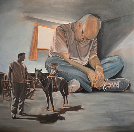 Eric Cuevas’ Familiar is a series of oil paintings exploring topics surrounding the aging of a parent, personal space, family, love, and forgiveness. Cuevas renders his narrative with intent to attain emotional clemency for himself and his father. In hopes of trapping the dissonance and sealing that within the work, he allows the meditative ritual of painting to act as burning sage. These works seek to confront the nature of a discordant relationship and find the determination for reconciliation and understanding. Cuevas is a Corpus Christi native and practicing artist in a variety of media including print, painting, and drawing. His art explores personal narratives, and his recent body of work revolves around family, particularly examining the generational rift that exists between a baby boomer father and a millennial son. He is set to receive a Bachelor of Fine Arts from Texas A&M University - Corpus Christi this Fall 2021.