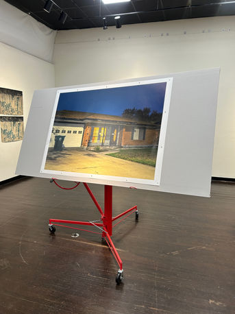 Privacy, More or Less is a collection of images, sculpture, sound, and installation that invites a closer look at the familiar. The artwork recontextualizes the American suburban aesthetic, exploring the nuanced and tense relationship between privacy and community that every neighborly relationship must navigate. My work is rooted in a daily practice of careful observation and street photography. Through image sequencing and experimental printmaking, the visuals of a typical backyard are reused and reimagined. The 3d works in the show are built from common items, but altered and combined to create a dream-like environment that is laced with subtle but consistent tension. Wandering through my neighborhood and the shopping centers that surround my home allows time to take photos, and highlight overlooked spaces and moments by sealing them permanently within a photograph. These walks, which I consider precious, also give time to reflect on the materials of the neighborhood–cedar privacy fences, grass, baseballs, and the competing sounds of dogs barking and lawnmowers. These objects of Americana are rearranged and reoriented, becoming grounds for poetic mystery. There are many connections to my personal history buried within this exhibition, but I invite visitors to explore their own histories, associations, and questions within the space.
